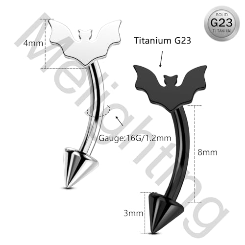 More information about Melighting 16G Bat Rook Piercing Jewelry, G23 Solid Titanium Eyebrow Ring, Internally Threaded Vertical Labret Lip Jewellery, Black Curved Barbells, Daith Rook Earring for Women
