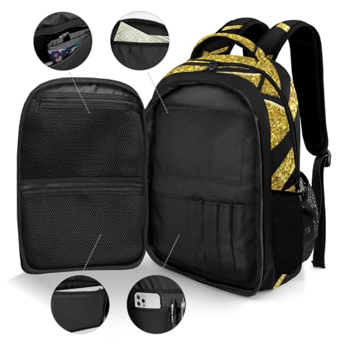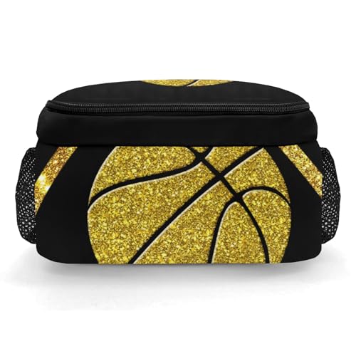 Custom Text Sport Basketball Gold Glitter Backpacks for Girls Boys School, Capacity School Backpacks for Kids Water-resistant Bookbags 1