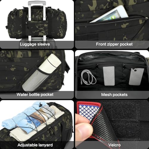 3-in-1 Tactical Gym & Travel Duffle Bag Backpack Men Multi-Functional 45L Military Sports Duffle Bag with Shoe Compartment & Wet Pocket for Workout Weekender Overnight Bag with Molle Webbing, Camo 6