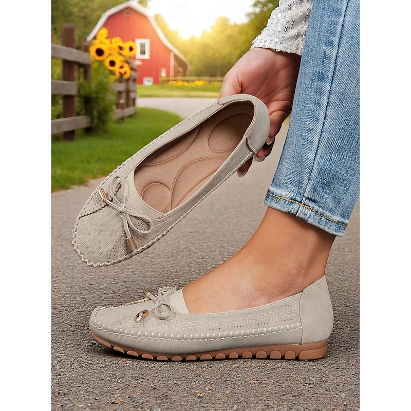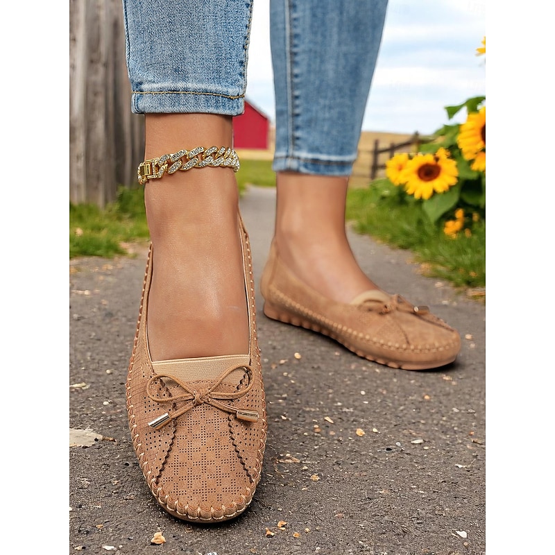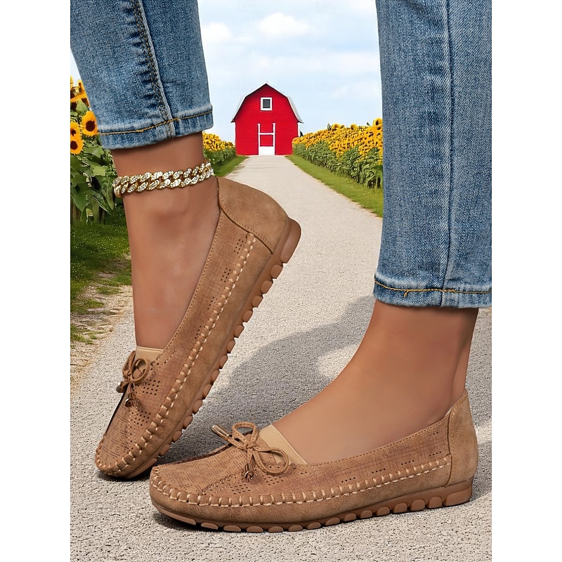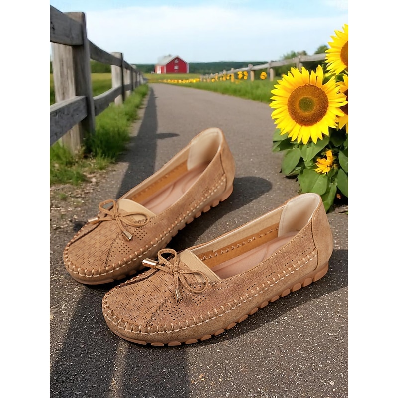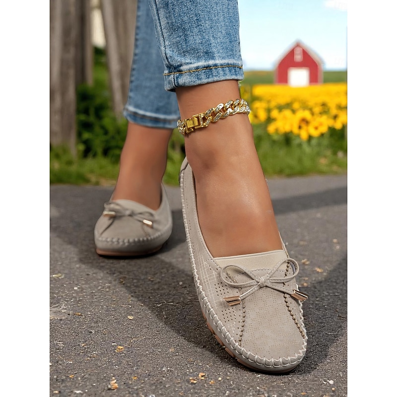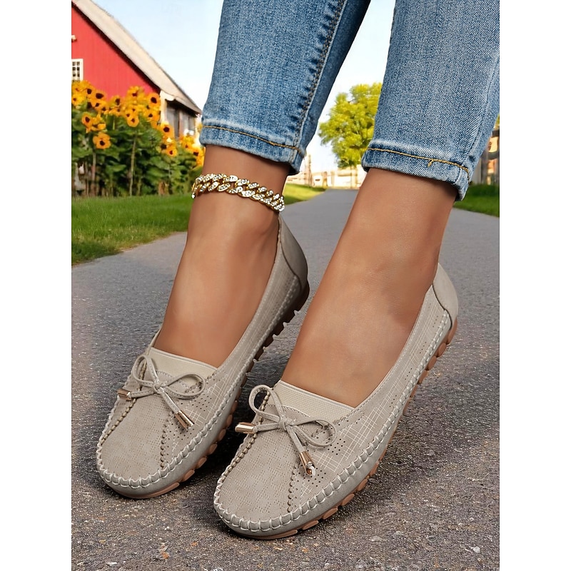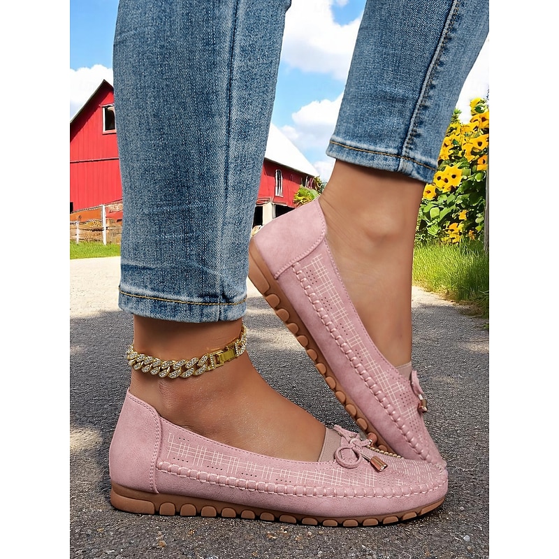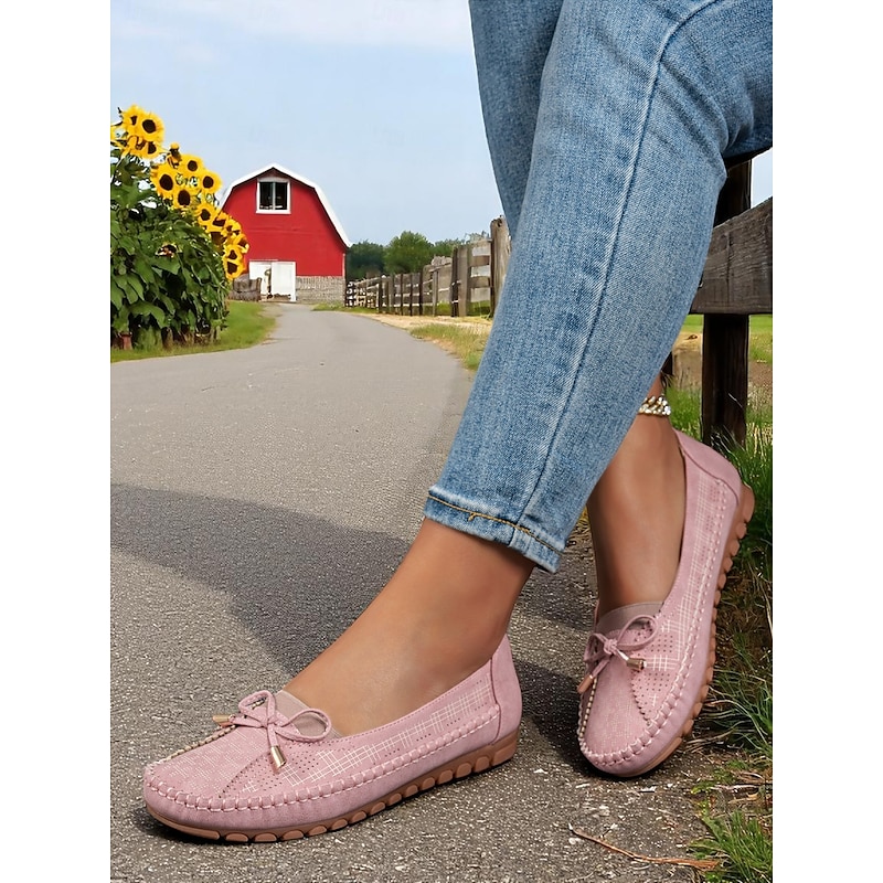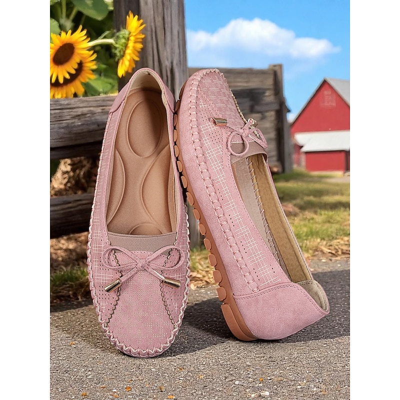 HOT ! Women's Pink Bow Moccasin Flats – Lightweight Casual Driving Loafers for Daily Errands, Garden Walks and Cottagecore Outfits