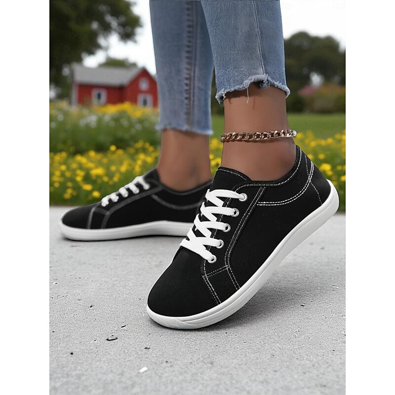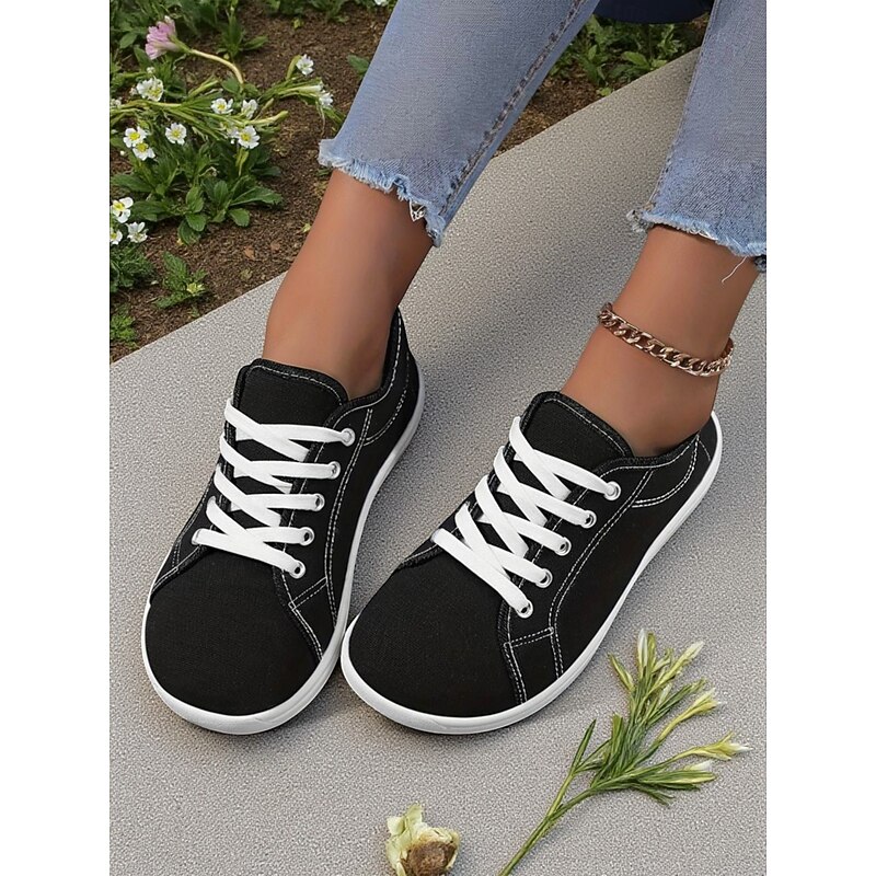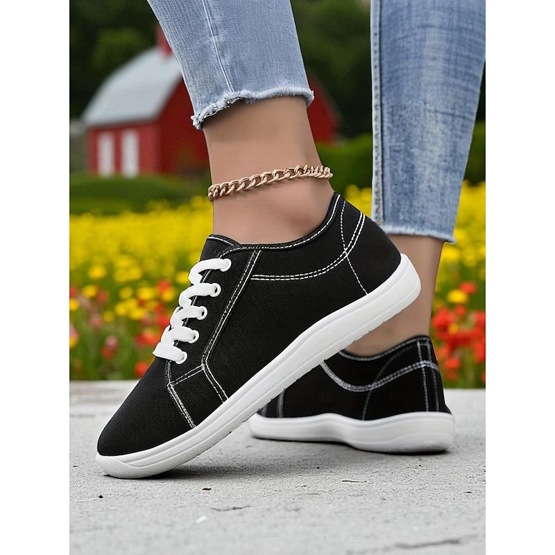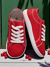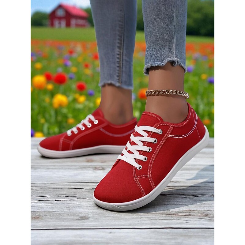 HOT ! Women's Red Wide Fit Canvas Lace-Up Sneakers – Lightweight Casual Walking Shoes, Breathable Streetwear & Travel Footwear