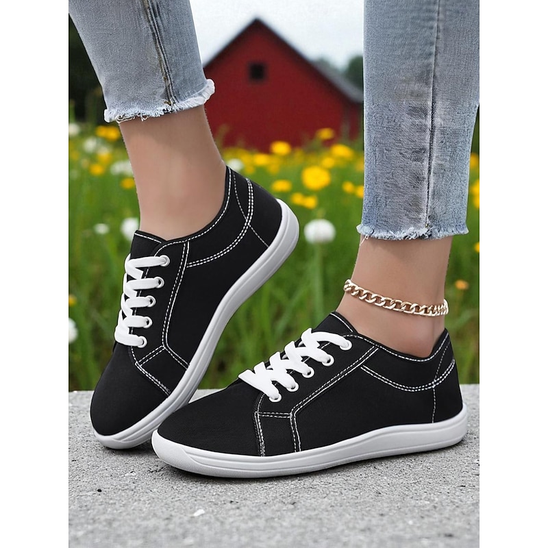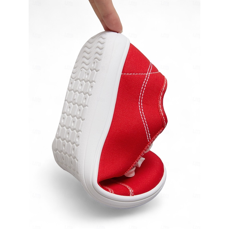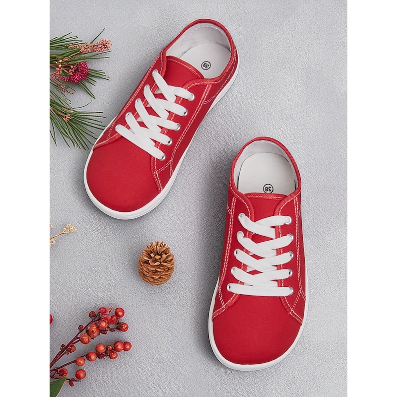 Women's Red Wide Fit Canvas Lace-Up Sneakers – Lightweight Casual Walking Shoes, Breathable Streetwear & Travel Footwear 17