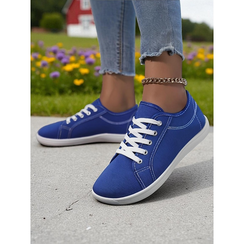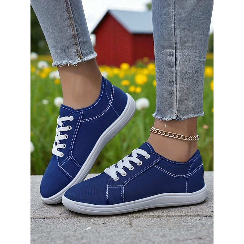 Women's Red Wide Fit Canvas Lace-Up Sneakers – Lightweight Casual Walking Shoes, Breathable Streetwear & Travel Footwear 19