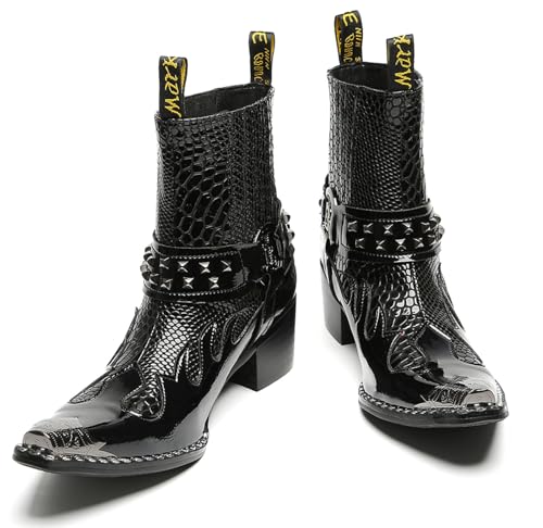 More information about Santimon Men's Genuine Leather Western Chelsea Cowboy Boots | Mid-Top with Metallic Wingtip Toe & Snakeskin Buckle | Dress-to-Casual for Stage, Neon Nights