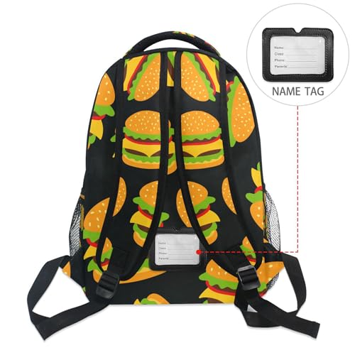 Hamburger Black Backpack for Boys Girls Kids Bookbag Laptop Tablet Travel School Bag with Name Tag 6