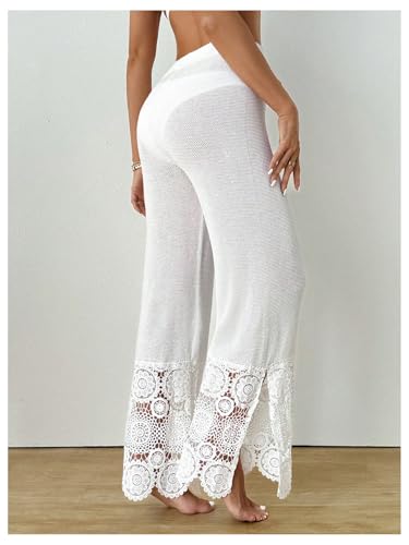 Verdusa Women's Contrast Lace Crochet Sheer Swim Coverups Paisley High Rise Split Pants 6