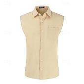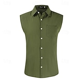 More information about Men's Shirt Linen Shirt Cotton Linen Shirt White Cotton Shirt Summer Shirt Beach Shirt Plain Vacation Street Khaki Army Green Sleeveless Lapel Summer Clothing Apparel Front Pocket