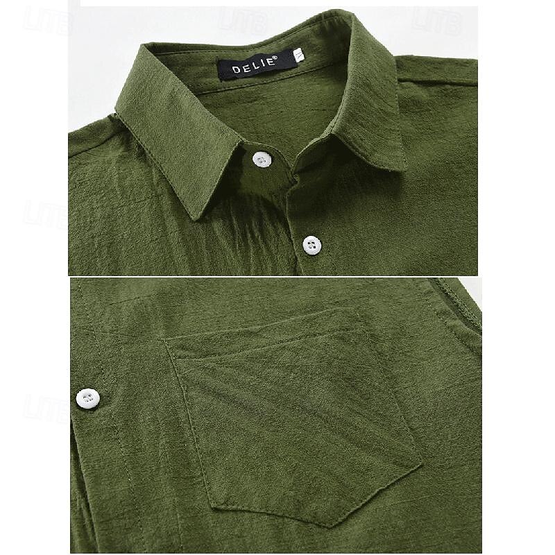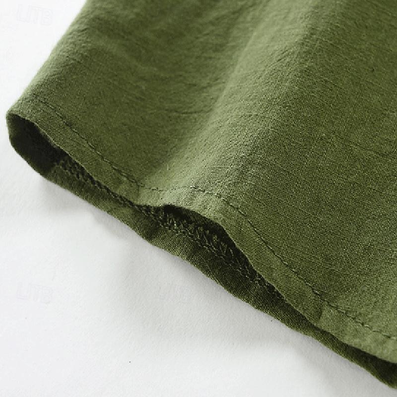 Men's Shirt Linen Shirt Cotton Linen Shirt White Cotton Shirt Summer Shirt Beach Shirt Plain Vacation Street Khaki Army Green Sleeveless Lapel Summer Clothing Apparel Front Pocket 11