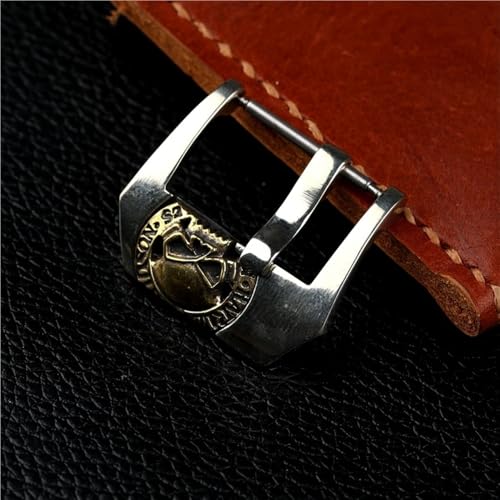 Bronze Buckle, 20 22 24MM White Brass Skull Embedded Leather Strap Accessories 1