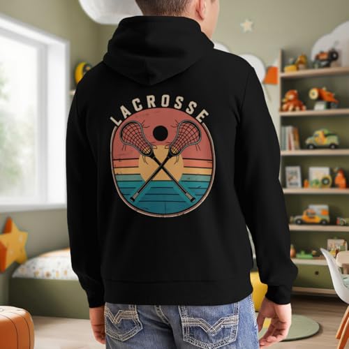 Kids Retro Vintage Lacrosse Sticks Boys Girls Lightweight Kangaroo Pocket Fleece Hoodies 6