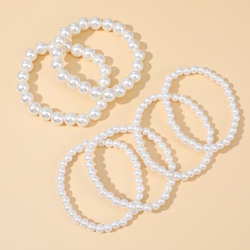 • Pearl Bracelet Set For Women: You will receive 6 white pearl bracelets for women, with 2 different pearl sizes, which can be worn alone or in combination, or matched with other bracelets. Wearing multi-layer pearl bracelets can enhance your image in the crowd