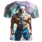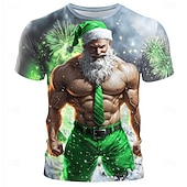 More information about Christmas Men's Santa Claus 3D T-shirts Santa Claus Muscle Casual Street Style 3D Print Tee Sports Outdoor Holiday Gray Short Sleeve Crew Neck Spring & Summer Clothing Apparel S M L XL XXL