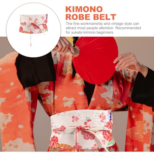 Amosfun Japanese Kimono Wide Belt Adjustable Robe Obi Yukata Waistband with Tassel for Women 25.59 X 6.29 Inches 4