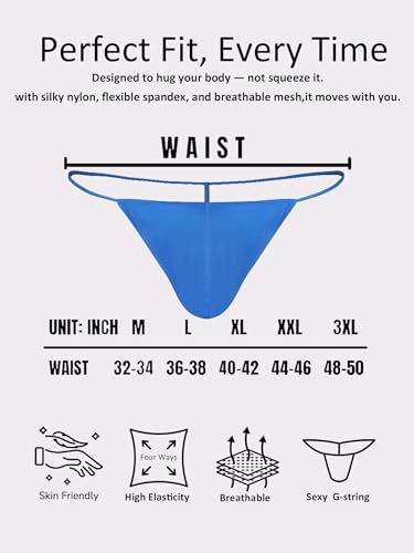 • Soft Breathable and Stretchy Men's Thongs Underwear: made of 87% Nylon material, colder than cotton, good choice for hot days, with 13% Spandex inside, it has good elasticity, fit for different body shape and size.