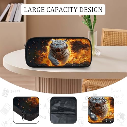 White Tiger Backpack 3PCS 16" Preschool Elementary Schoolbag with Lunch Box Pencil Case Bookbag Set for Girls Boys Kids Children Teens School Students 6