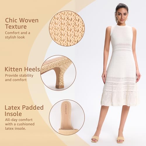 Raffia Mule Sandals for Women Square Toe Slip On Kitten Heels Woven Heeled Slides for Summer Dress and Vacation 5