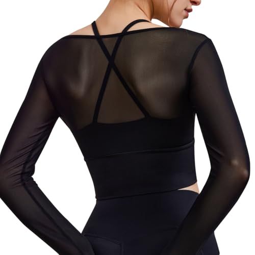 More information about Harssidanzar Long Sleeve Yoga Shirts for Women Mesh Gym Athletic Tops Workout Shirts with Sports Bra CL304US