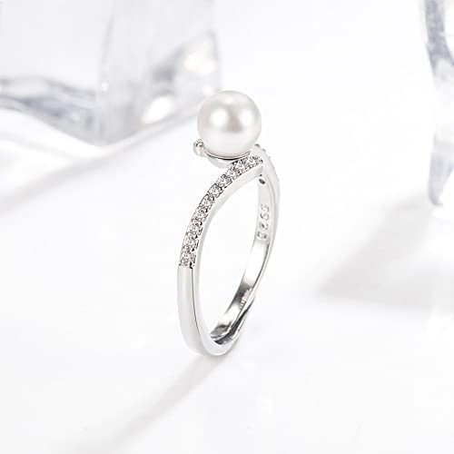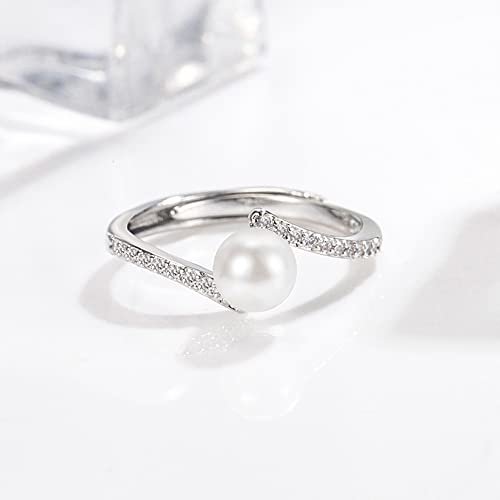 OIDIMS Pearl Promise Ring for Women Cubic Zirconia Statement Expandable Adjustable Rings Pearl Ball Open Band Comfort Fit Valentine's Day Engagement Wedding Jewelry Unique Elegant Gifts for Mom 7