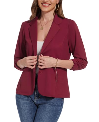 • ✔Feature: 3/4 Ruched Sleeve Blazer, Open front blazer suit jackets with two front button, Notched lapels collar, Work office suit jackets, Solid color, Front lined, Blazers for women work casual