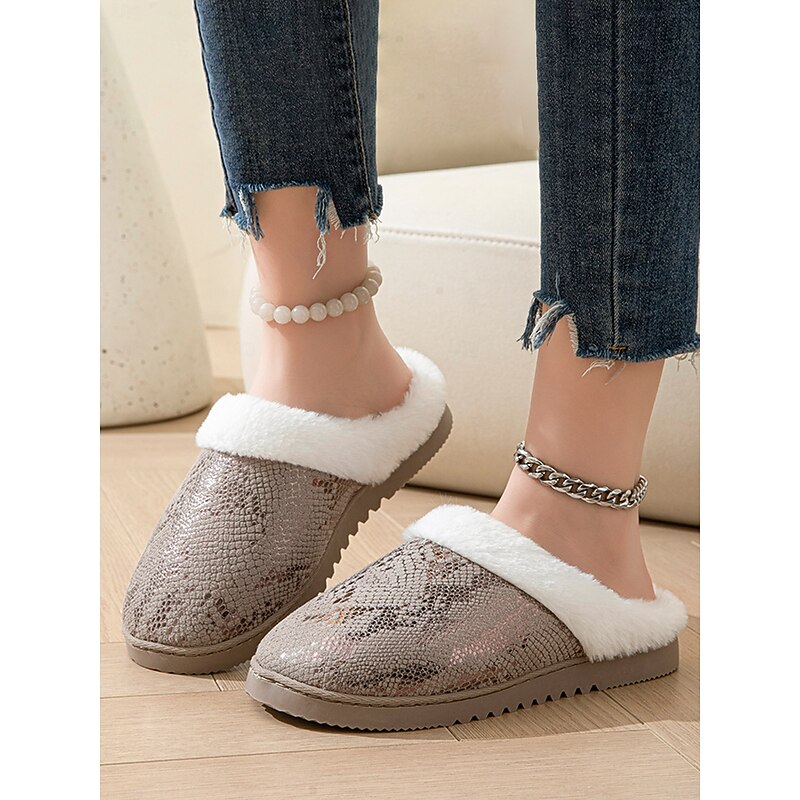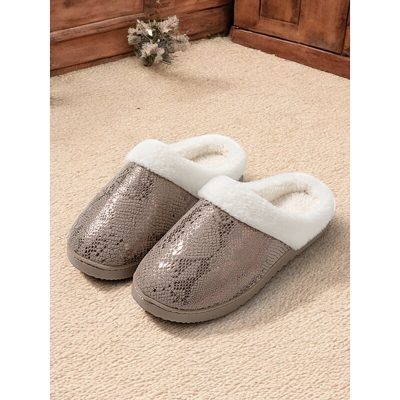Women's Cozy Faux Fur-Lined Slippers with Snakeskin Pattern and Flexible Sole, Perfect for Indoor Winter Comfort