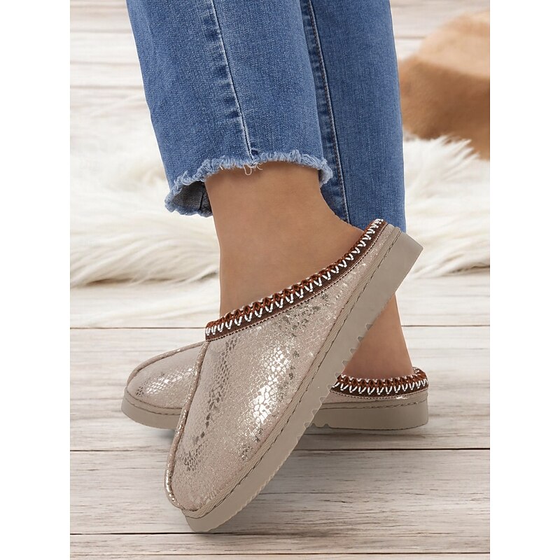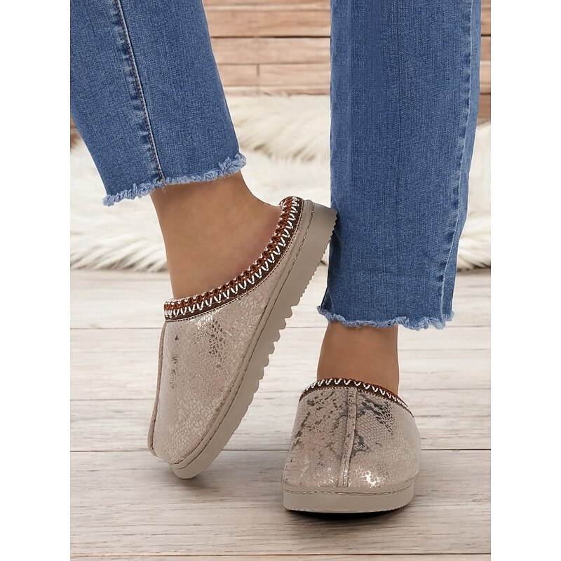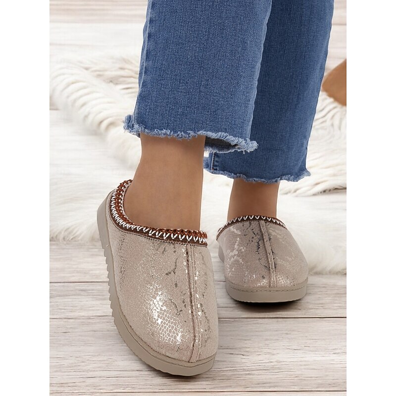 More information about Women's Cozy Faux Fur-Lined Slippers with Snakeskin Pattern and Flexible Sole, Perfect for Indoor Winter Comfort