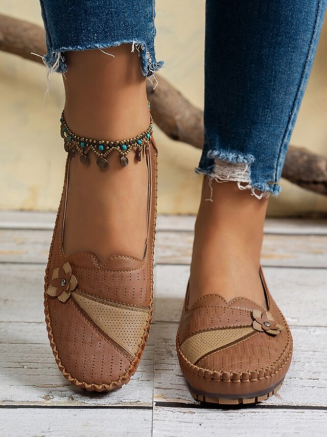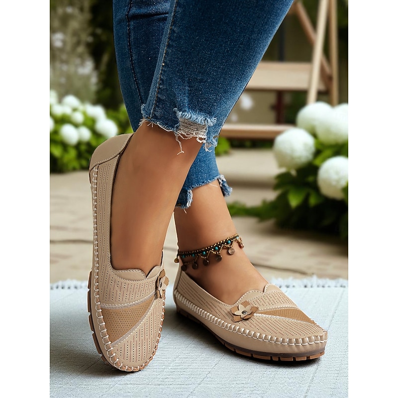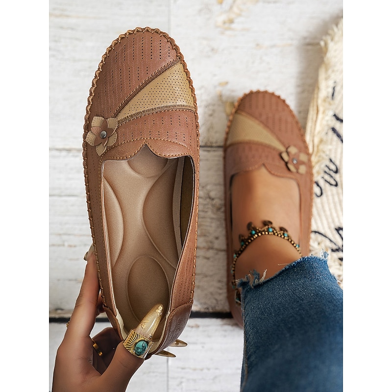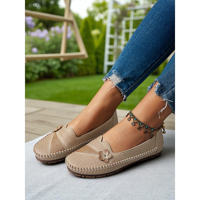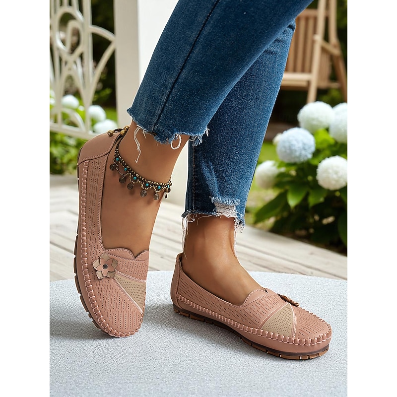 HOT ! Women's White Perforated Loafers with Flower Detail – Soft Casual Flats for Garden Strolls, Driving and Everyday Comfort