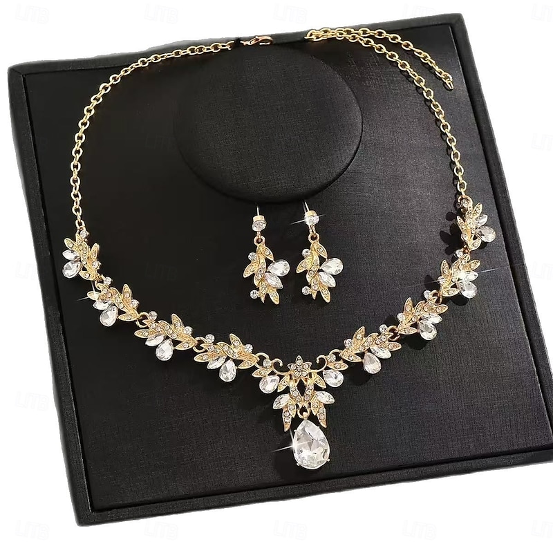 $18.99 - Women's Gold Rhinestone Jewelry Set with Teardrop Pendant - Elegant Leaf Design Necklace and Dangle Earrings for Brides, Wedding Guests, and Formal Evening Events 2025. Shop for cheap Women's Earring online? Buy at lightinthebox.com on sale today!