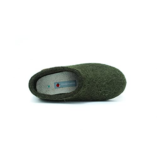 SNEGI Olive Green Wool Felt Handmade Slippers, Beige Rubber Sole, Unisex Hygge Comfortable Natural Shoes 7
