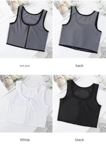 FTM Trans Zip Up Elastic Chest Binder Breathable Summer Cool Mesh Slim Fit Tank Top 4
