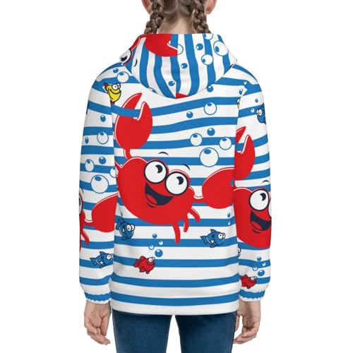 Red Funny Crab on Blue Stripe Kid Hoodies Boys Zip Up Sweatshirts Girls Pullover with Pocket 5