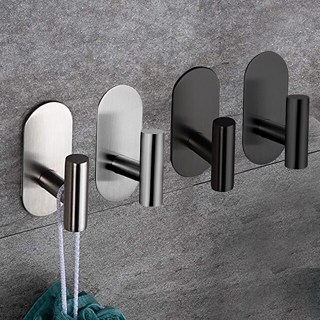 4 pcs Robe Hook New Design / Self-adhesive / Creative Contemporary / Modern Stainless Steel / Low-carbon Steel / Metal 4pcs - Bathroom Wall Mounted 6