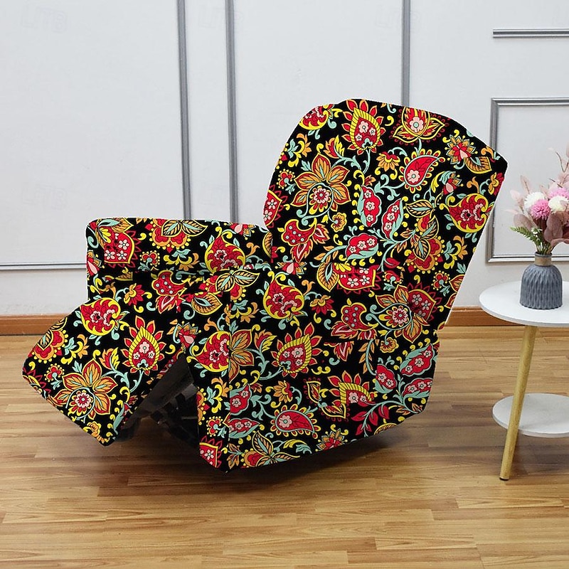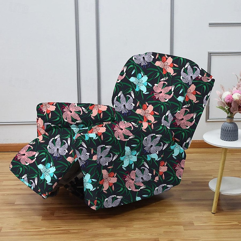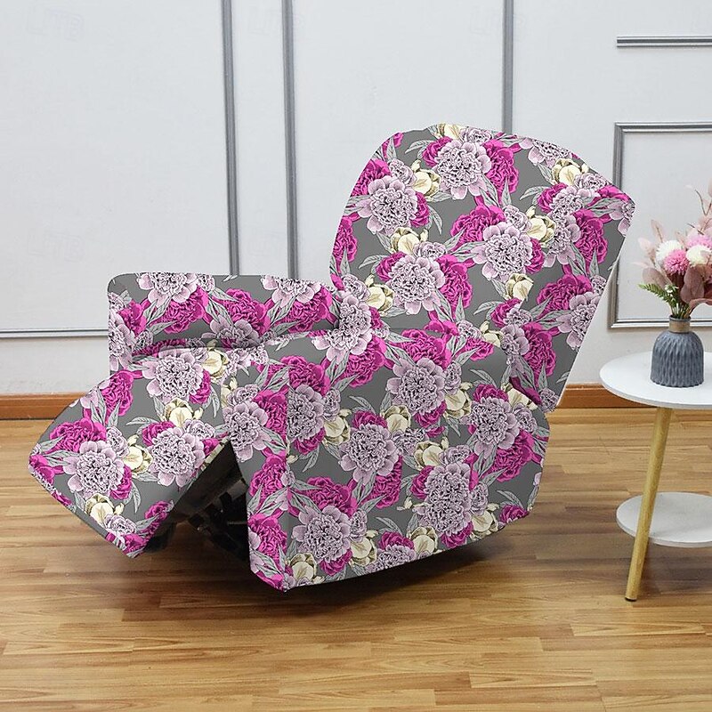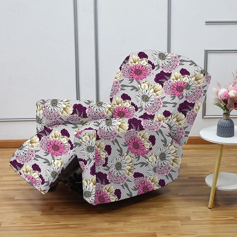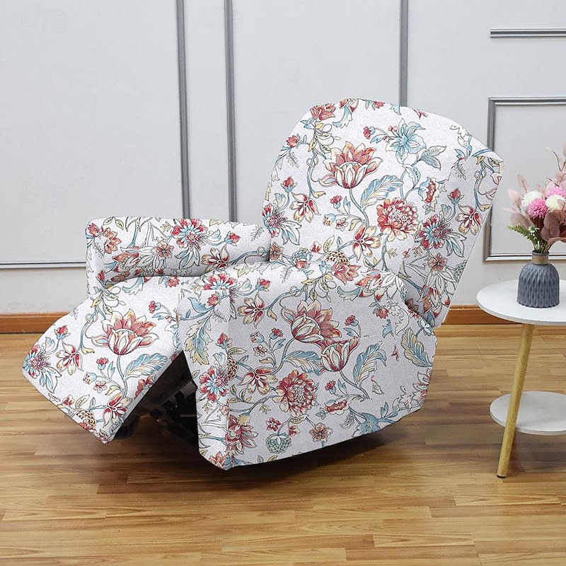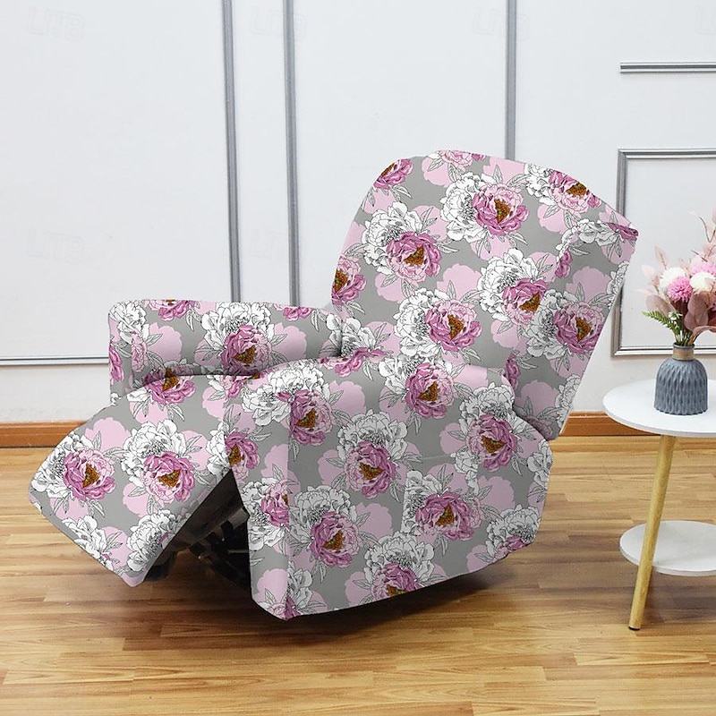 Floral Recliner Covers Slipcovers Lazyboy Covers Couch Chair Cover 4-Pcs Set, Non Slip Reclining with Storage Pockets Furniture Protector for Living Room