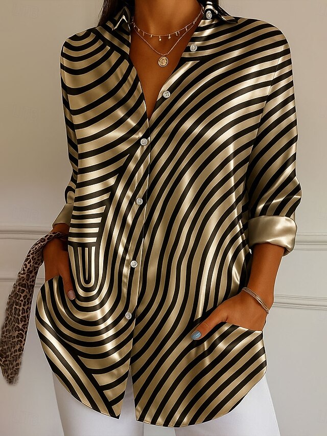 Women's Shirt Dressy Tops Formal Work Shirt Graphic Geometric Striped Elegant Stylish Modern Long Sleeve Collar Party Evening Wear Daily Blue Purple Green Khaki Gray Summer Fall Winter Spring, Fall 10