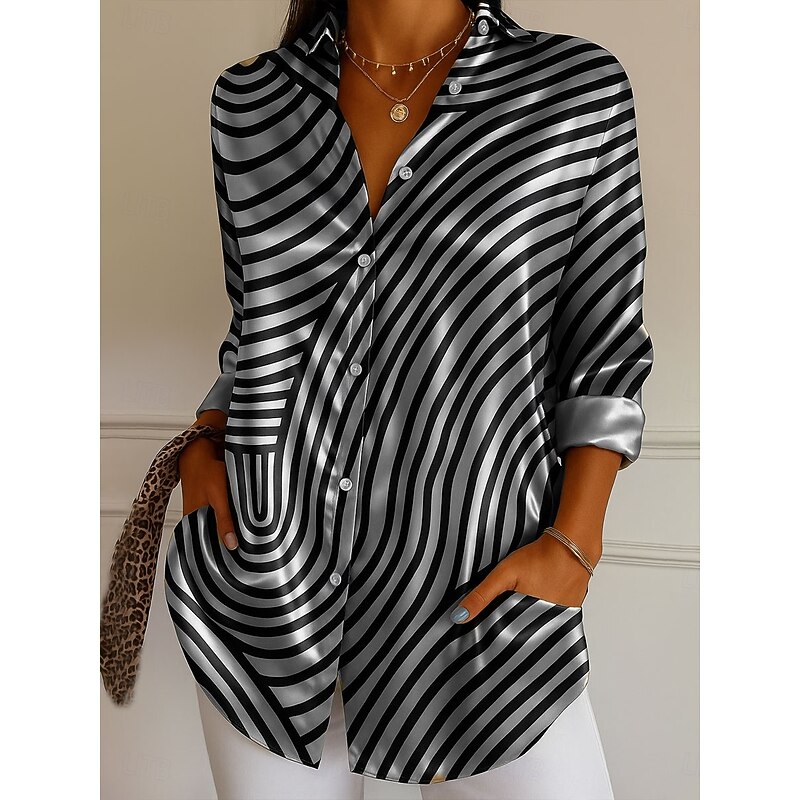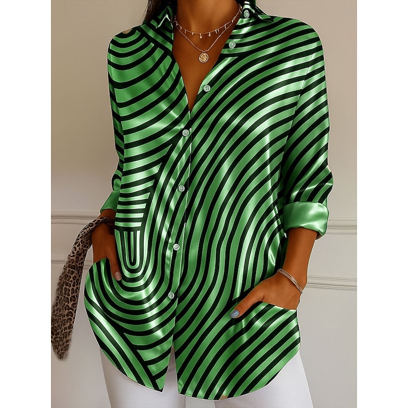 More information about Women's Shirt Dressy Tops Formal Work Shirt Graphic Geometric Striped Elegant Stylish Modern Long Sleeve Collar Party Evening Wear Daily Blue Purple Green Khaki Gray Summer Fall Winter Spring, Fall