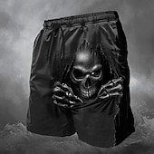 More information about Men's Shorts Summer Shorts Casual Shorts Drawstring Pocket Elastic Waist Skull Optical Illusion Halloween Costumes Soft Breathable Short Casual Daily Holiday Fashion Streetwear Black Micro-elastic