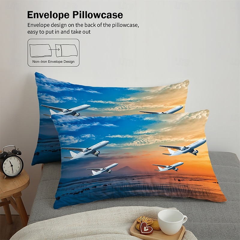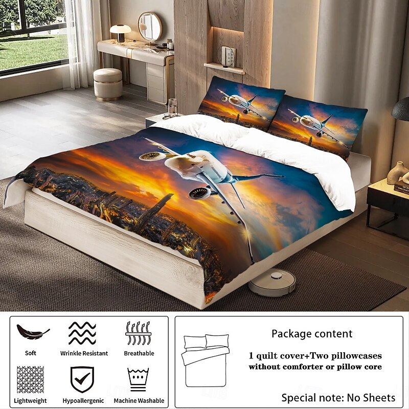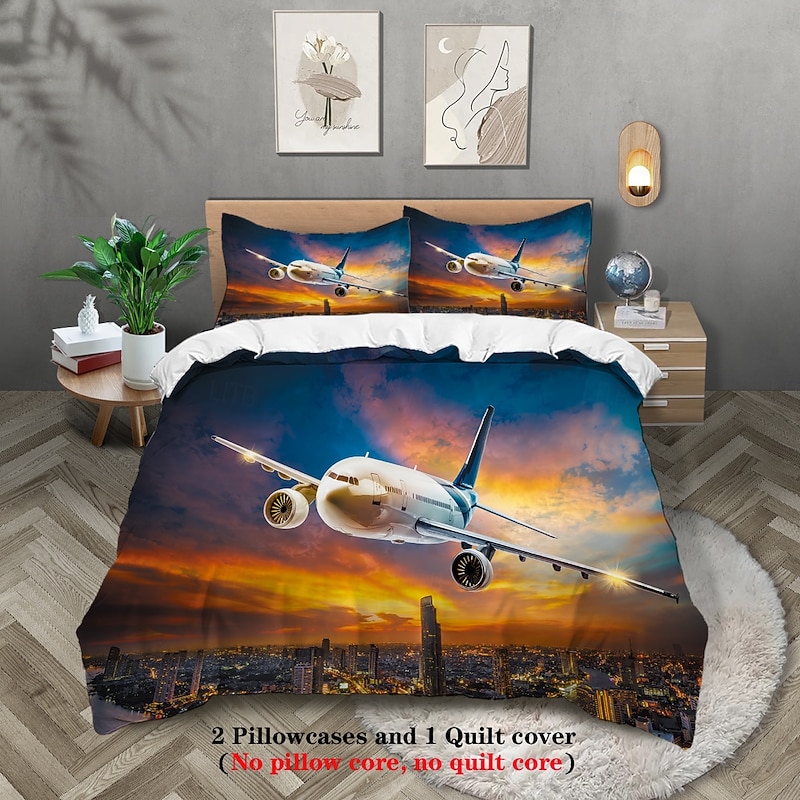 $71.99 - Sunset Sunset Civil Aviation Aircraft Printed 3-Piece Down Quilt Set Hotel Bedroom Guest Room Luxury Bedding Comfortable Set 1 Down Quilt Set 2 Pillowcases Queen Bed Set 2 Piece Set 3 Pie 2025. Shop for cheap Duvet Cover Sets online? Buy at lightinthebox.com on sale today!