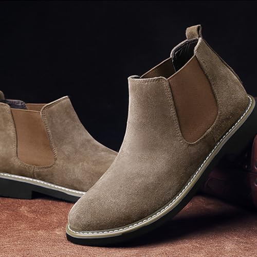 Men's Suede Chelsea Boots Fashion Round Toe Chunky Heel Non-Slip Business Ankle Boots Retro Slip-On Short Boots 6