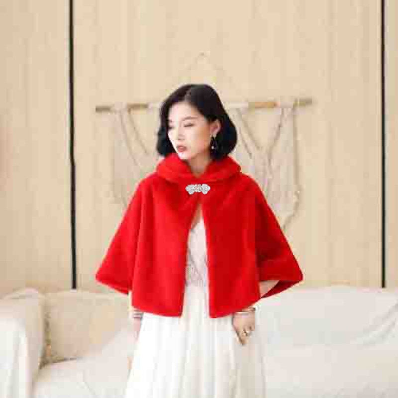 Long Sleeve Capes Faux Fur White Coat Wedding / Party / Evening Women's Wrap With Crystal Brooch 9
