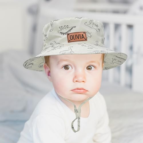 TOOTANN Custom Baby Bucket Hat, Personalized Leather Label Baby Fisherman Hat with Name, Wide Brim Beach Hat for Toddler 5