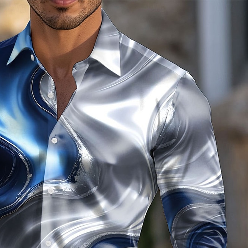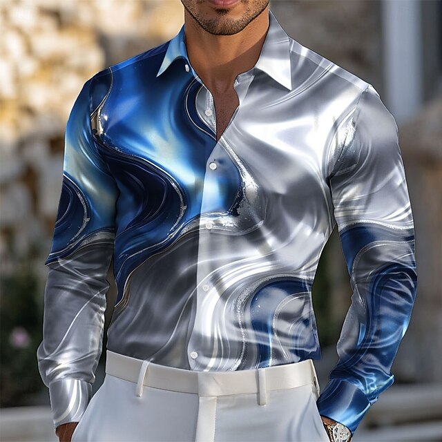 More information about Men's Gradient Waves Marble Shirt Satin Shirt Dress Shirt Long Sleeve Fashion Casual Vacation Dailywear Summer Spring Fall Turndown 3D Print Button Up Shirts Red Blue Purple Green