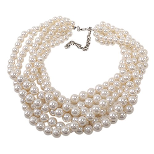 More information about Kalse Simulated Pearl Cluster White Beads Twisted Statement Chunky Bib Short Choker Necklace