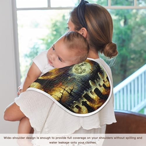 Muslin Burp Cloth for Baby 2PCS Halloween Oil Painting Graveyard Super Absorbent Burping Cloths, Bibs for Newborn Boys Girls 2