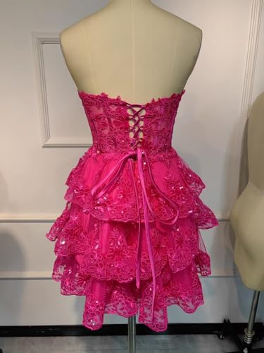 • Feature:Built in Bra,Tiered Homecoming Dresses,Strapless Lace Appliques Prom Short Dresses,Cocktail Evening Gown,Sparkly Homecoming Dresses 2023,Short A Line Glitter Sequin Appliques Homecoming Dresses with Corset Back,Sleeveless