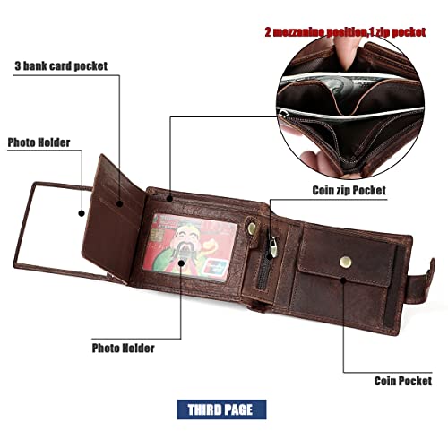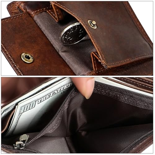 Genuine Leather Trifold Wallet for Men RFID Blocking Bifold with Coin Pocket Security Zipper Wallet Money Clip (brown) 6