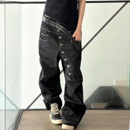 More information about Unisex Y2k 90s Vintage Curved Long-Row Multi Button Wide Leg Jeans Hiphop Punk Street Grunge Loose Casual Denim Pants