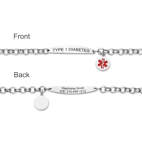 More information about Medical Alert ID Bracelet for Women, Stylish Customizable Medic Jewelry,18k Gold, Rose Gold, Silver, Personalized Engraving, Hypoallergenic, Waterproof, Includes Gift Box & Med ID Wallet Card