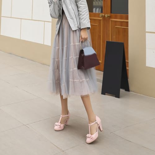 • [Closure Type]: Ankle strap buckle design easy to slip-on and take-off,without any hassle.stable chunky block heel round toe mary janes cute bow cosplay shoes fit well comfortable and breathable,as long as you wear it, you will be the most dazzling at any time.
