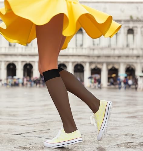 • PERFECT FIT STRETCHY NYLON : Our sheer knee-hi socks are tailored to provide a perfect fit, ensuring they hug your legs comfortably without slipping or bunching. Ideal for wearing with trousers, skirts, or dresses, these versatile socks are a practical choice for any outfit.