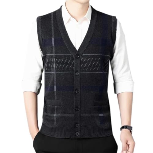 Men Sleeveless Knit Buttons Vest Basic Thick Winter Stripes Vintage Cardigan Sweater Vest 4