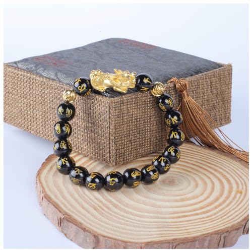 • Size and material: Black obsidian PiXiu bracelet length:19~21cm(Elastic rope), beads (diameter: 10mm, material: obsidian; brave (size: about 24.5*12*9mm; material: Vietnamese sand gold)Please note that our Feng Shui Wealth Bracelet is suitable for wrist circumference of medium or large size and not suitable for small wrists. If your wrist is small, the bracelet may be too large for you.